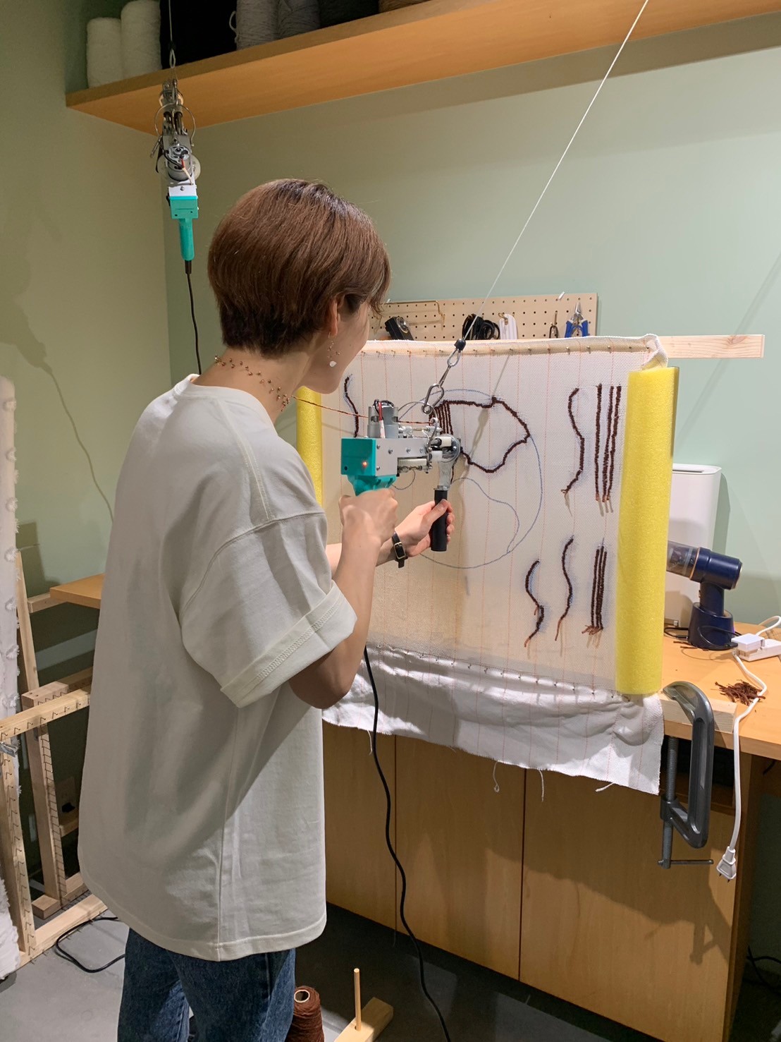 専用のガンを使ってラグを作る「タフティング」