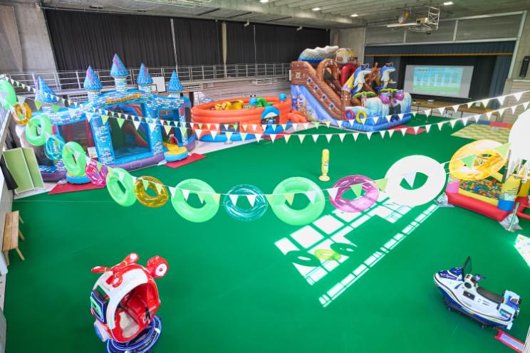 「ふわふわジム」の会場内は土足禁止のため、裸足の入場またはスリッパの持参が必要