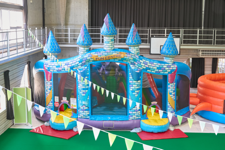 体育館のエリアは裸足で入れるので、小さなお子さん連れにも安心。冷房完備の広々空間で、思いっきり体を動かし、汗だくで夏の屋内アドベンチャーを満喫していました。