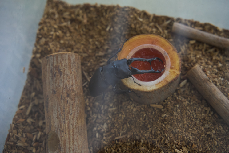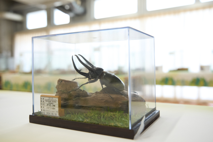 さらに、海外からやってきた本物のカブトムシ・クワガタムシの生体展示もあり、間近でその迫力を体感できます。夜行性のため昼間はじっとしていることが多いのですが、間近で観察できるその存在感は思わず息をのむ迫力。