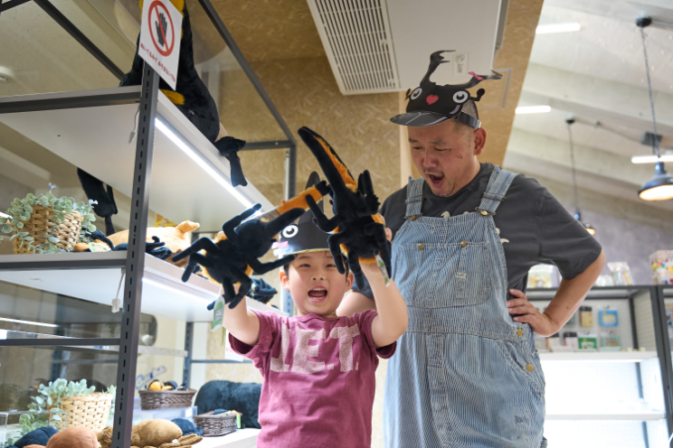 昆虫気分も冷めやらぬなか、同じ階にあるショップ・自由工作室へ。カブトムシやクワガタのグッズ、実験キット、科学系のおもちゃなど、知的好奇心をくすぐるアイテムがずらり。さっくんは真剣な表情で、おみやげ選びに夢中でした。
