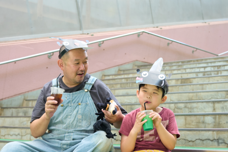 自分で作ったサンバイザーも身につけて、「カブトムシスタイル」にご満悦なさっくん。親子で楽しめる仕掛けの数々に大満足の様子でした。